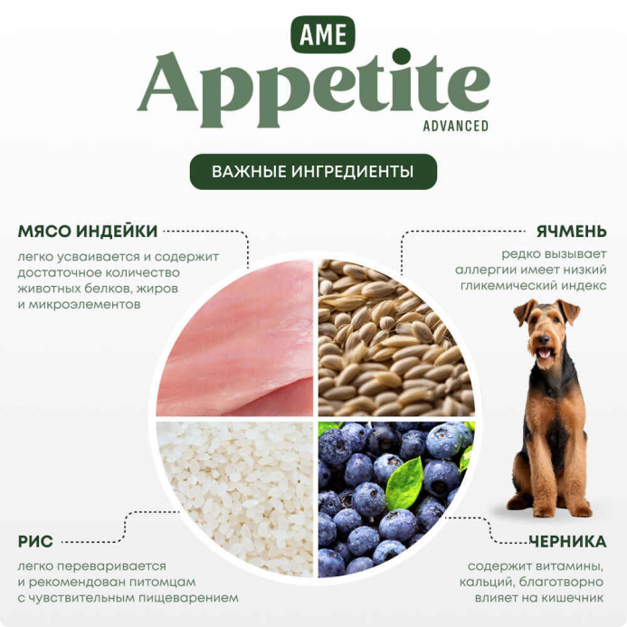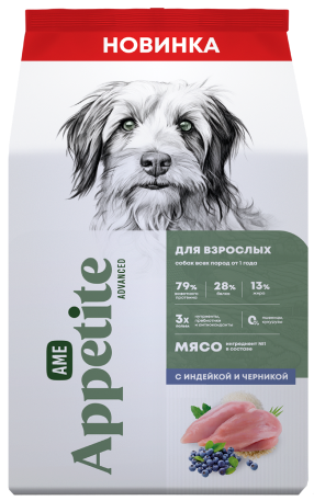 AmeAppetite Advanced сухой корм с индейкой и черникой для взрослых собак всех пород от 1 года