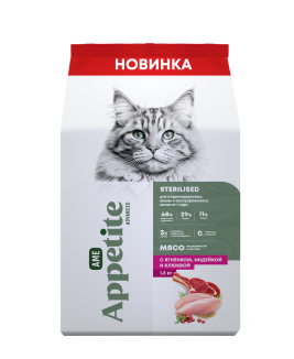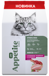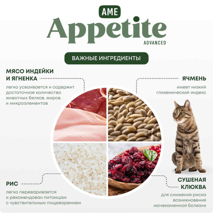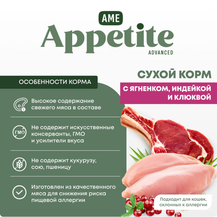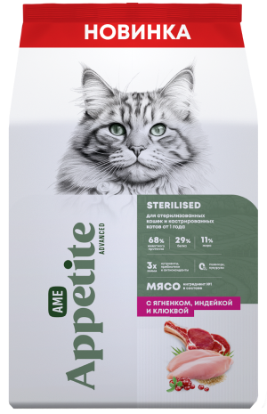 AmeAppetite Advanced сухой корм с ягненком, индейкой и клюквой для стерилизованных кошек и кастрированных котов от 1 года