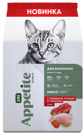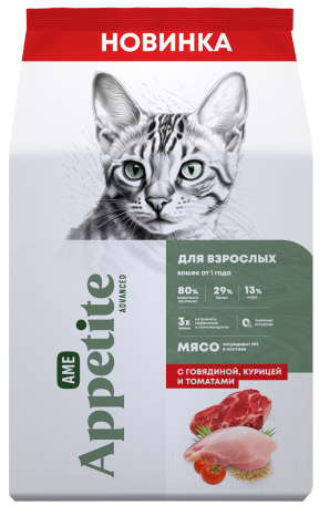 AmeAppetite Advanced сухой корм с говядиной, курицей и томатами для взрослых кошек от 1 года