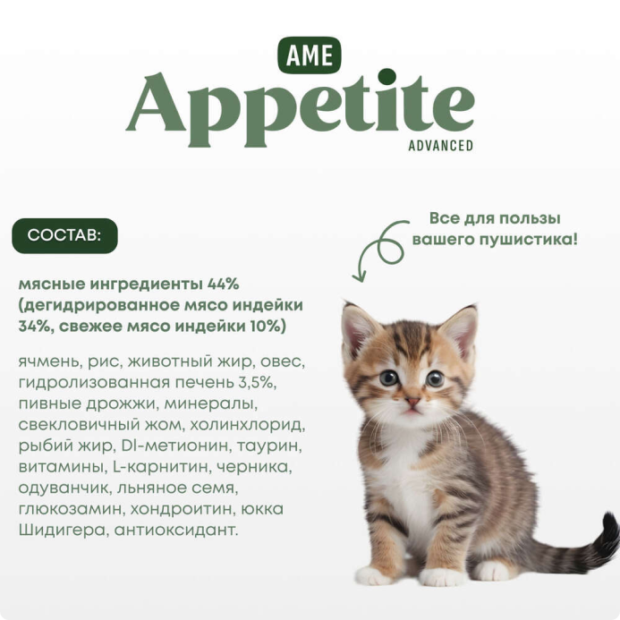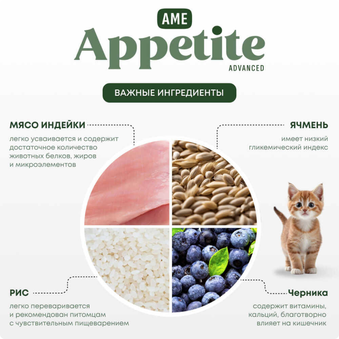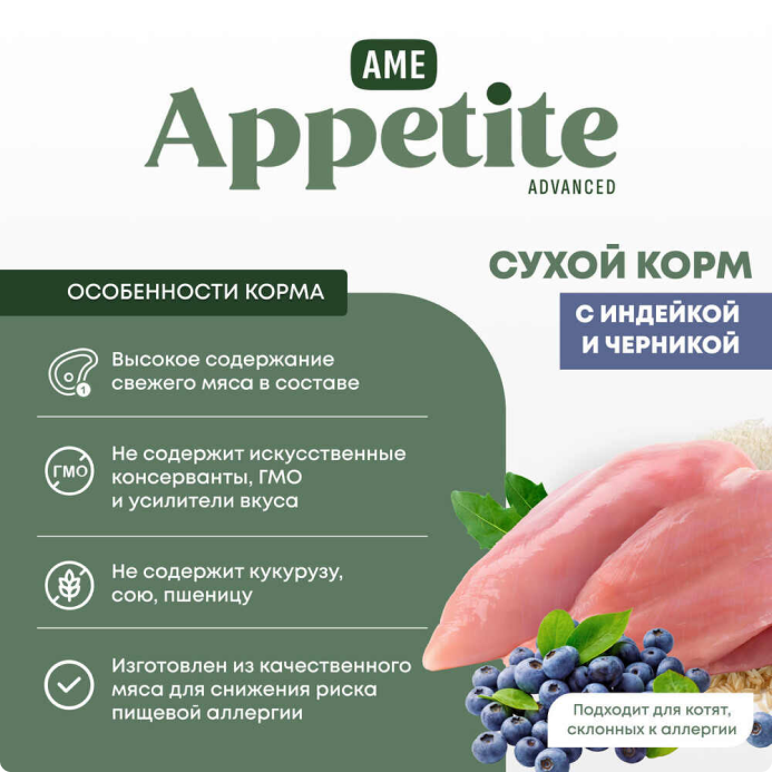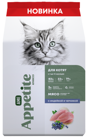 AmeAppetite Advanced сухой корм с индейкой и черникой для котят с 2 до 12 месяцев